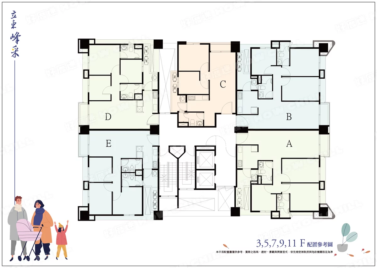 | 建材說明 | 廚具:BEST,衛浴:TOTO,其他:維夫拉克電子鎖、太格木地板、鑄鋁鋼木門、三菱電梯、歐蘭特電動曬衣架 |